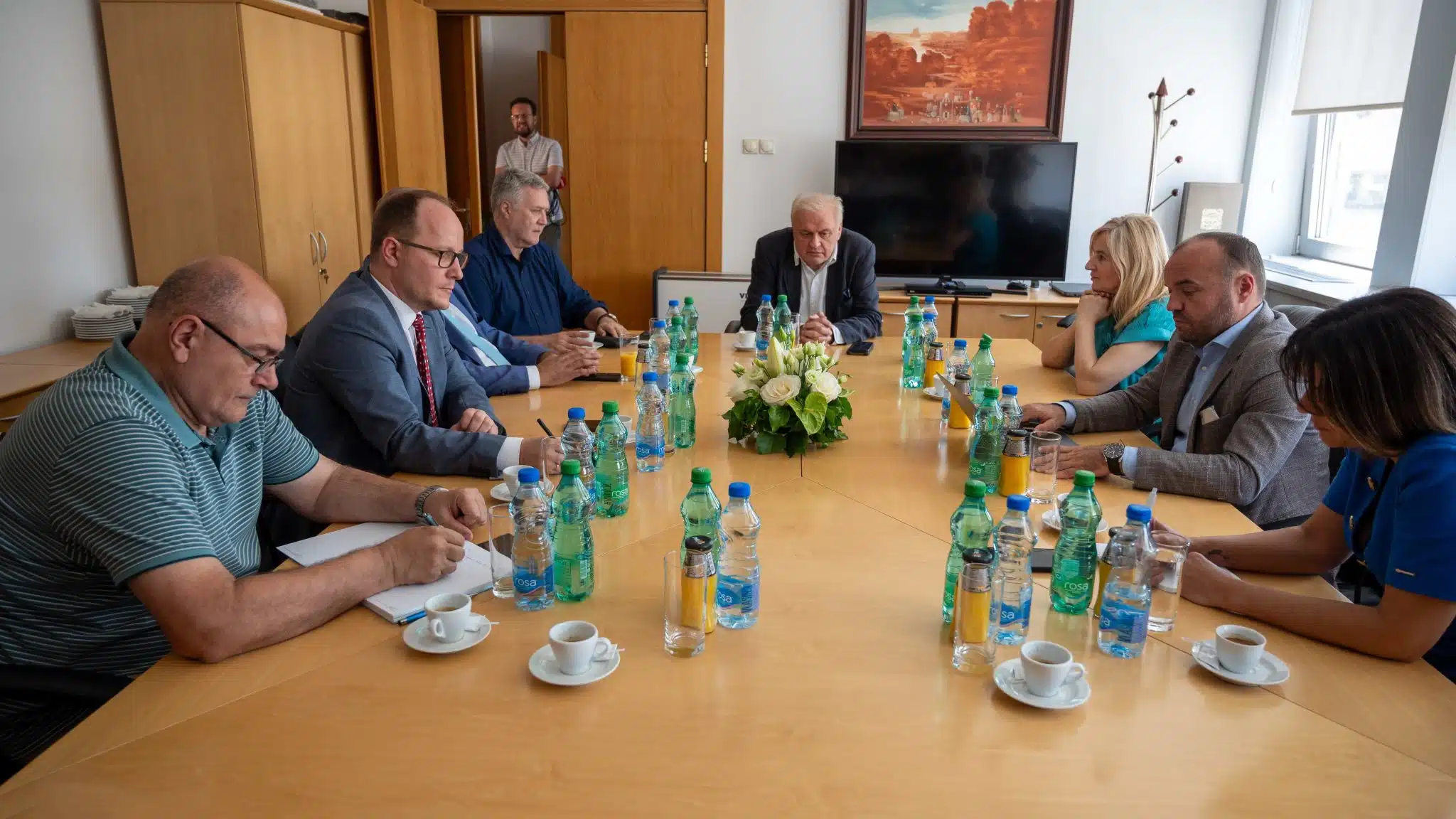 Министар информисања и телекомуникација у Влади Републике Србије, Дејан Ристић, састао се у суботу 8. јуна у Палати Србија са министром саобраћаја и веза Републике